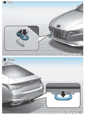 Acil bir durumda kurtarma servisi bulunamıyorsa, aracınız, ön (veya arka) tarafta bulunan acil çekme kancasına tespit edilen halat veya zincir ile çekilebilir.