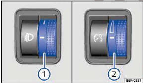 Şek. 83 Direksiyonun yanında: Far ayarı (1) ve gösterge ve düğme aydınlatması