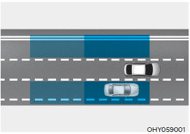 Ilerideki şeridi algılayarak şerit değiştirme sırasında, fonksiyonun kör noktadan yaklaşan bir araçla çarpışma riski olduğuna karar vermesi durumunda, fonksiyon frenleme yaparak çarpışmanın önlenmesine yardımcı olur.