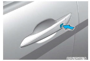 Akıllı anahtarı beraberinizde taşırken kapıların kilidini açmak için, dış kapı kolunun düğmesine basınız veya akıllı anahtar üstündeki kapı kilit açma düğmesine basınız.