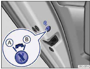 Şek. 34 Sol arka kapı: Çocuk kilidi (A) devre dışı, (B) devrede.