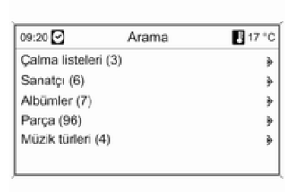Parça (şarkı) arama ve seçim ile ilgili ilave opsiyonları içeren menüyü açmak için: Ara menü noktasını seçiniz.