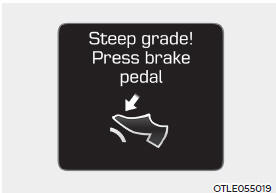 Bu uyarı mesajı araç bir eğimde yavaşça sürülürken, araç fren pedalına basılı olmadığı tespit edildiğinde görüntülenir.