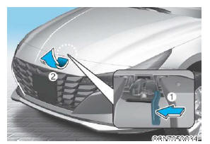yardımcı mandalı (1) yukarı iterek kaputu