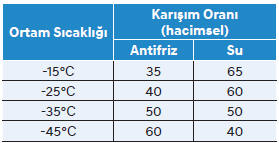 Karışım oranı hakkında bir şüphe varsa, %50 su ve %50 antifriz karışımı ikisinden de aynı miktar olduğu için en kolay yoldur.