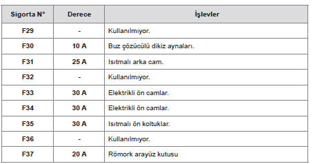 Karşıdaki uyum tablosunda gösterilmeyen sigortanın değiştirilmesi aracınızın ciddi şekilde arızalanmasına sebep olabilir.